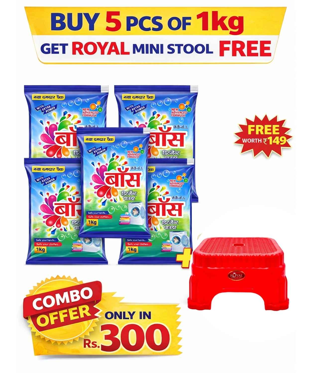 JV NO.1 BOSS DETERGENT POWDER (PACK OF 5) (GET FREE MINI ROYAL STOOL)