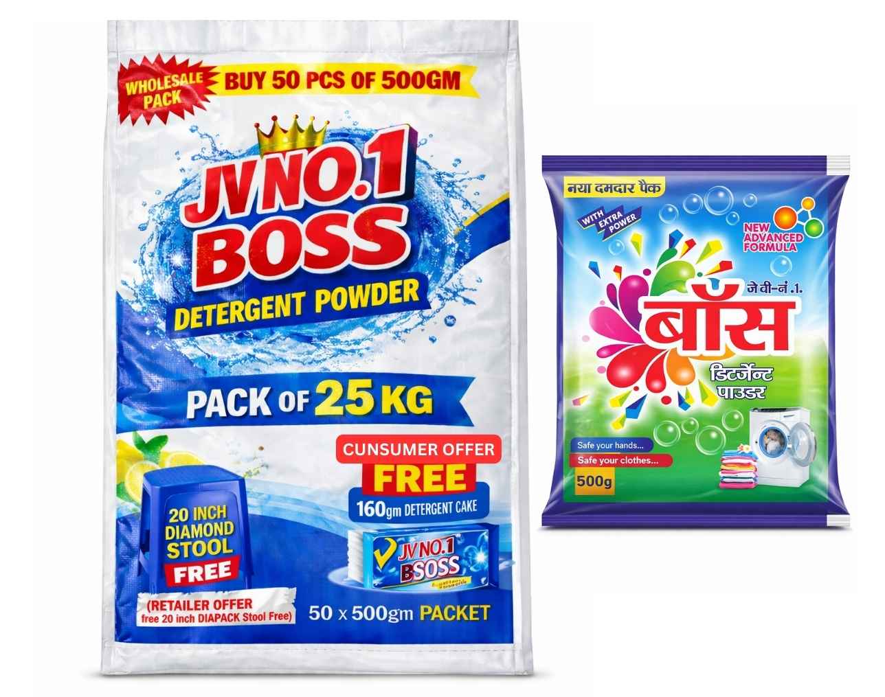 JV NO.1 BOSS DETERGENT POWDER BLUE 500G (Wholesale Pack of 50 PCS | Total Net Weight: 25KG)