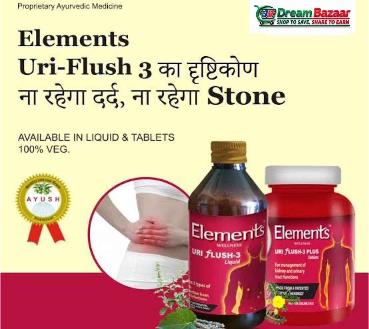 Elements Wellness Uriflush-3 Liquid 200 ml | Ayurvedic Urinary Stone Support & Kidney Health Syrup