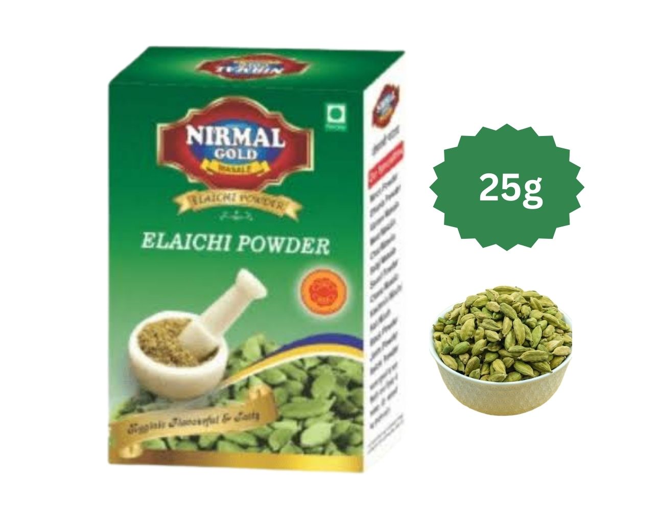 Nirmal Gold Elaichi Powder 25GM | Premium Cardamom Powder | Strong Aroma & Sweet Flavor | Finely Ground & Hygienically Packed | Made in India