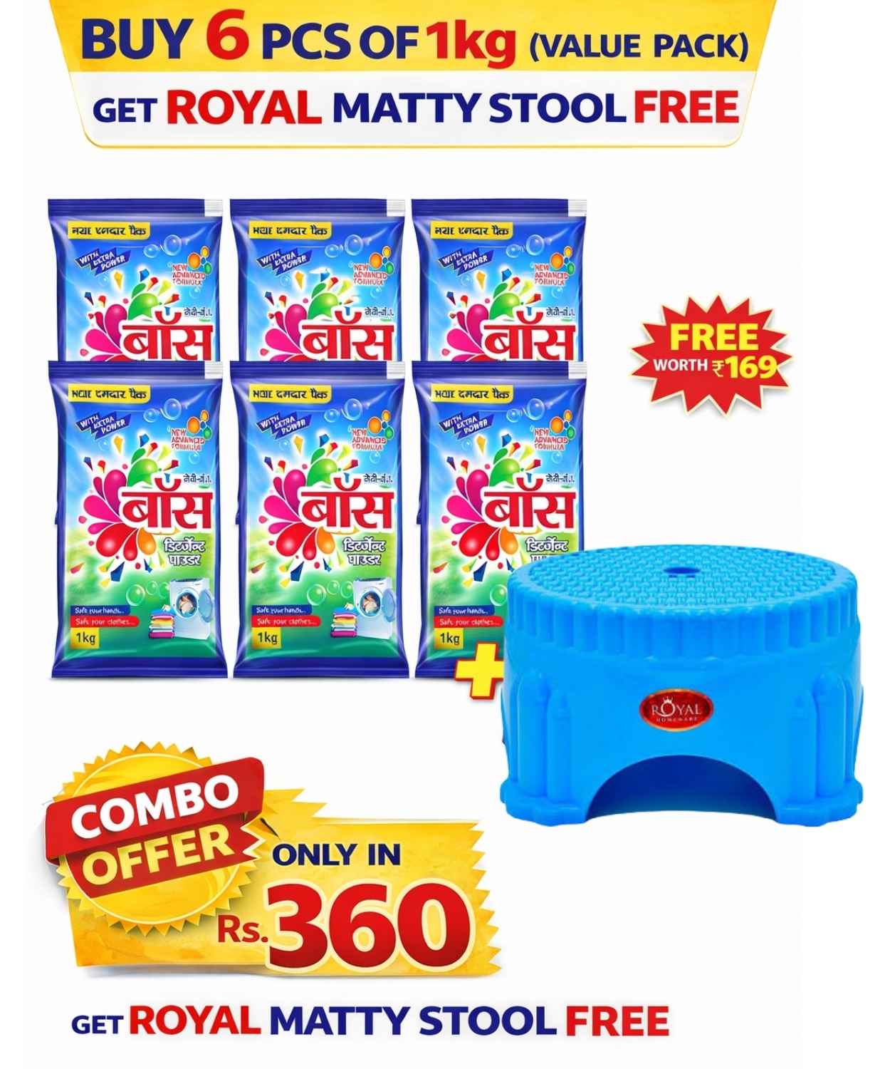 JV NO.1 BOSS DETERGENT POWDER PACK OF 6 (GET FREE MATTY ROYAL STOOL)
