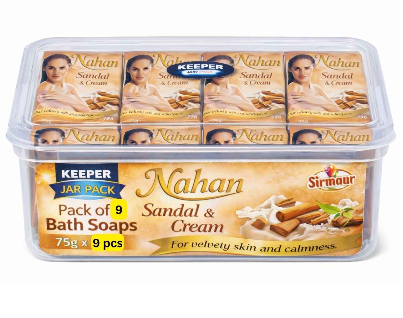 NAHAN Bath Soap Pack of 9 (Sandal, Rose, Milk & Almond, Aloe Vera, Neem, Lemon) — Keeper Jar Value Pack | Multi-Fragrance Family Bath Soap Combo