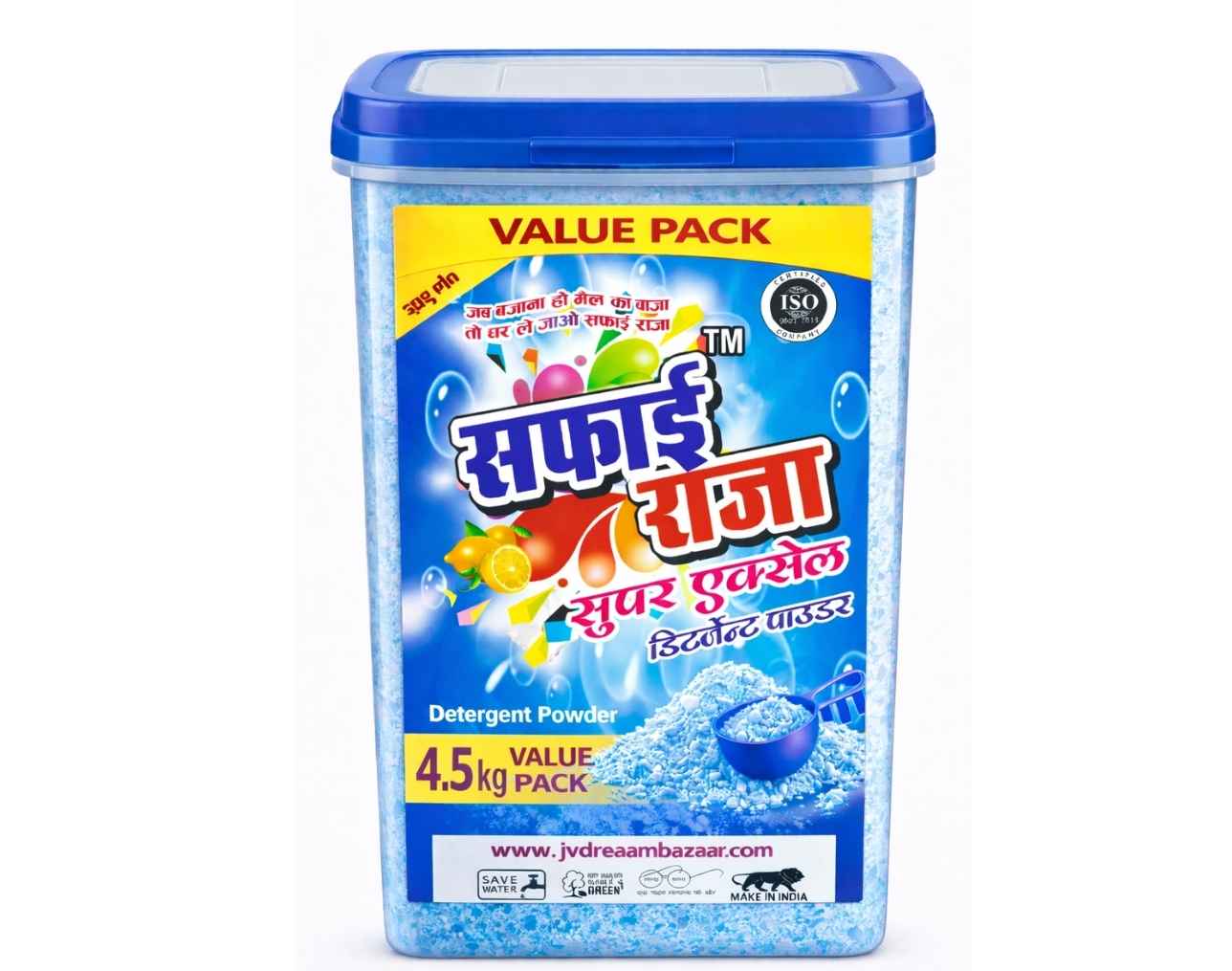 🧼 SAFAI RAJA SUPER EXCEL DETERGENT POWDER BLUE — 4.5 KG (RECTANGULAR JAR PACK)