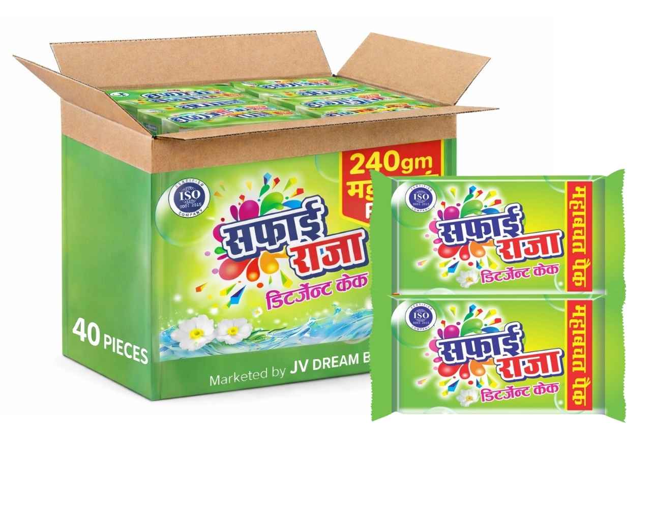SAFAI RAJA Regular Detergent Cake 240 GM — 40 Pieces Wholesale Carton Pack | Powerful Laundry Cleaning Bars | Bulk Retailer & Distributor Pack
