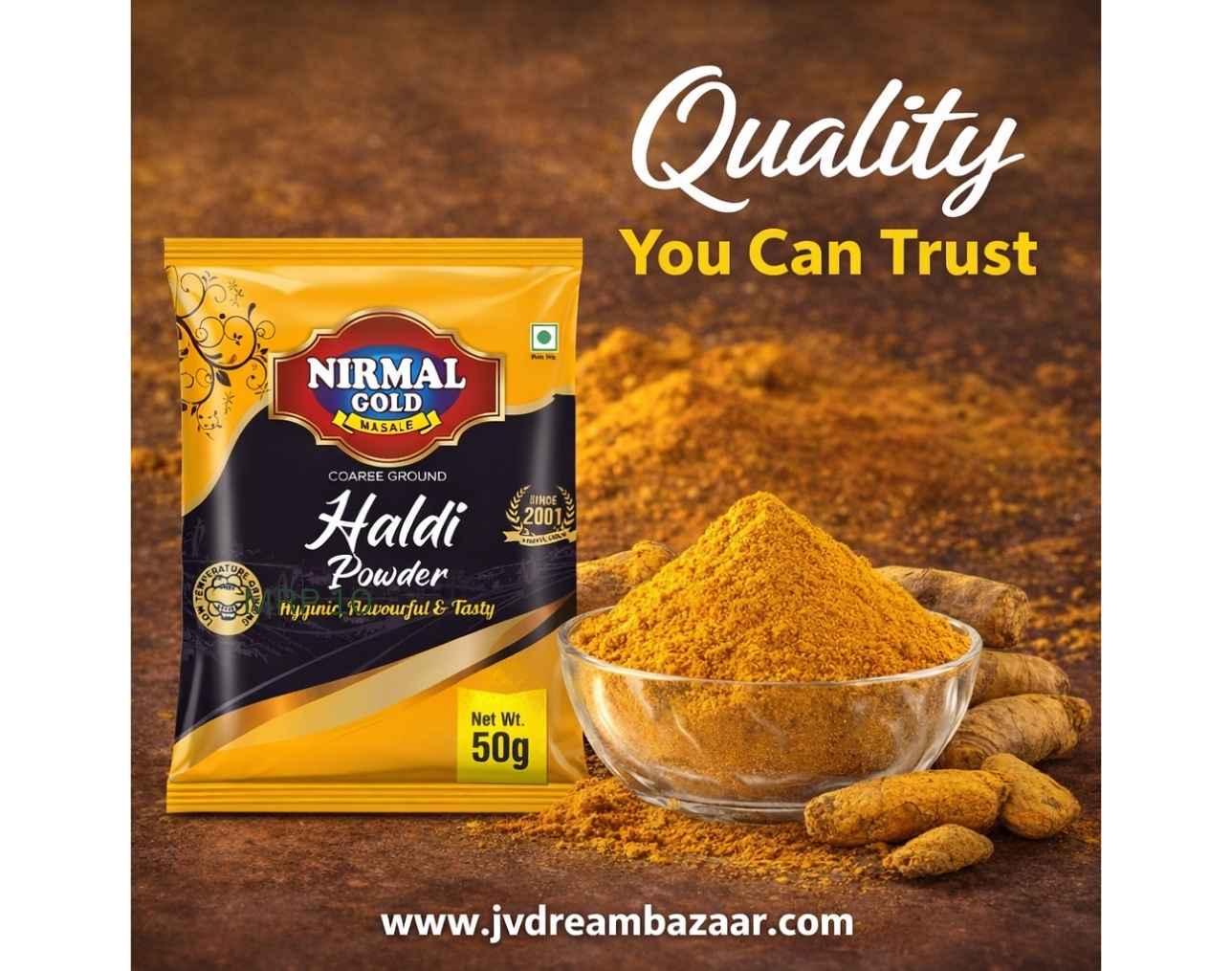 Nirmal Gold Haldi Powder 50GM Pouch | Pure Turmeric Powder | Fresh & Aromatic | Daily Cooking Spice