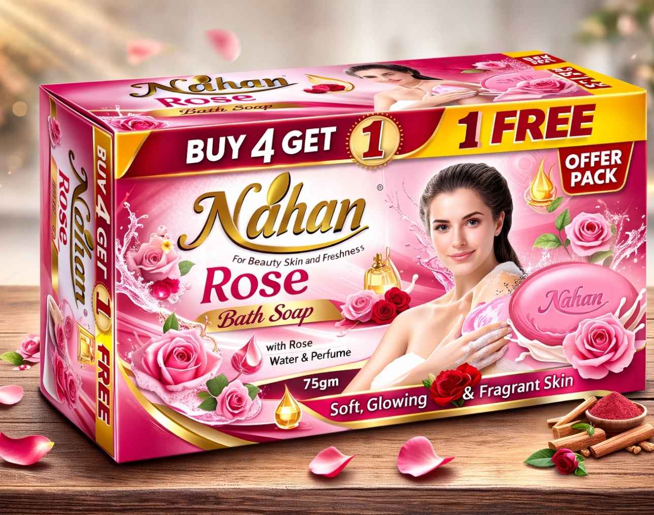 NAHAN Bath Soap 75 GM — Buy 4 Get 1 Free Offer Pack | Sandal, Rose, Milk & Almond, Aloe Vera, Neem & Lemon Bath Soap Value Combo