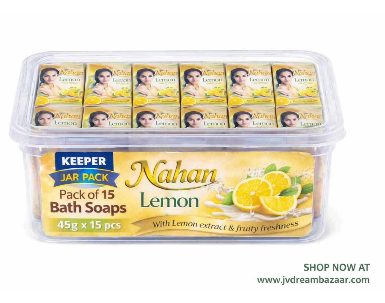 NAHAN Bath Soap 45 GM Pack of 15 with FREE Keeper Jar | Sandal, Milk & Almond, Lemon & Rose Mini Bath Soap Mega Family Value Pack