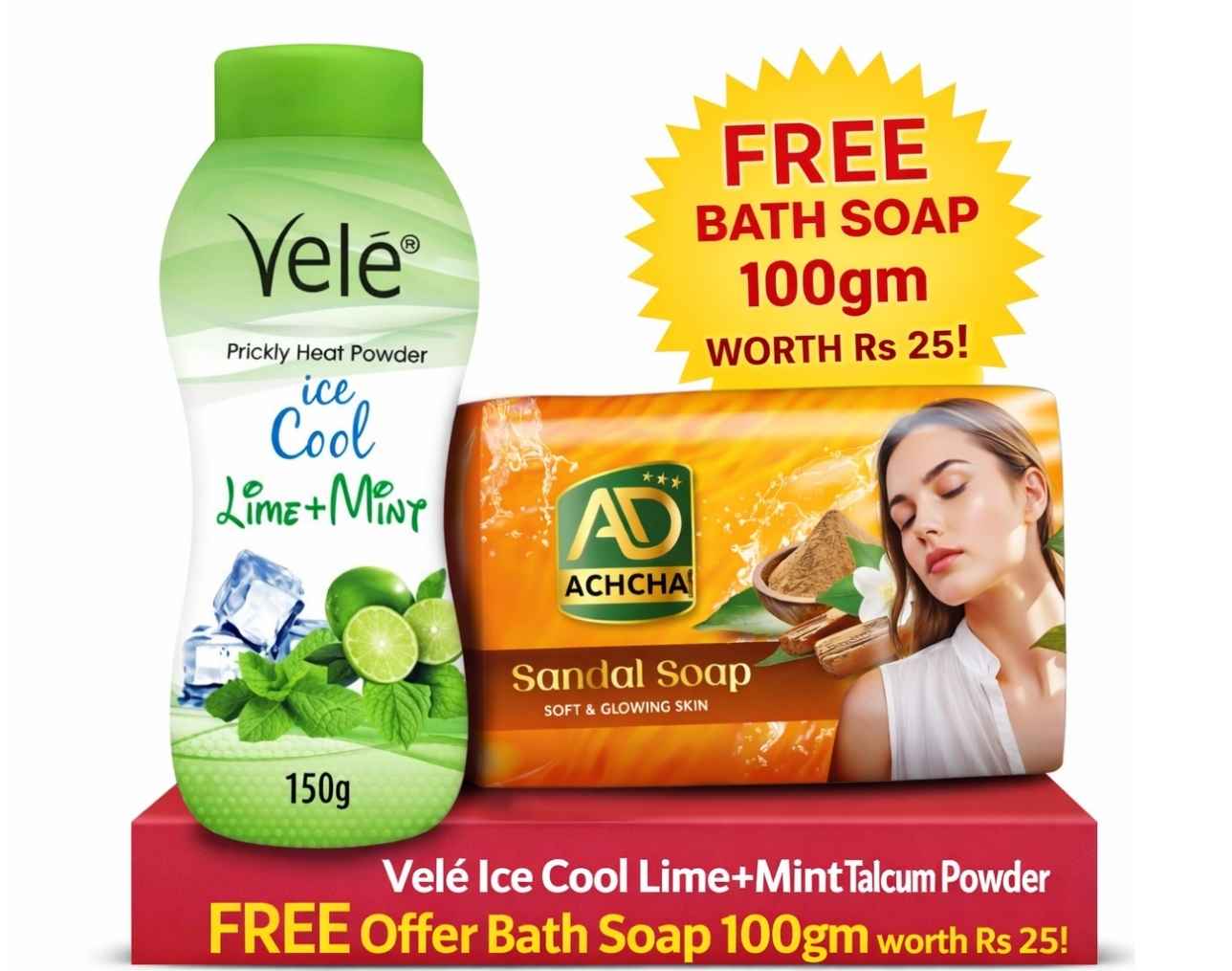 VELE ICE COOL — TULSI + MINT 150 GM VALUE PACK | FREE: AD ACHCHA BATH SOAP 100 GM (WORTH ?25)