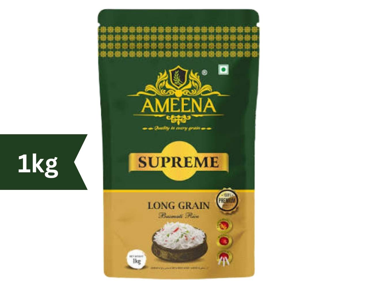 Ameena Supreme Premium Basmati Rice – 1kg Long Grain | Naturally Aromatic | Premium Quality Rice