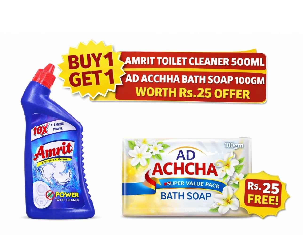 toilet cleaner with free soap, amrit toilet cleaner 500ml combo, buy 1 get soap free, bathroom cleaner offer pack, household cleaning combo deal
