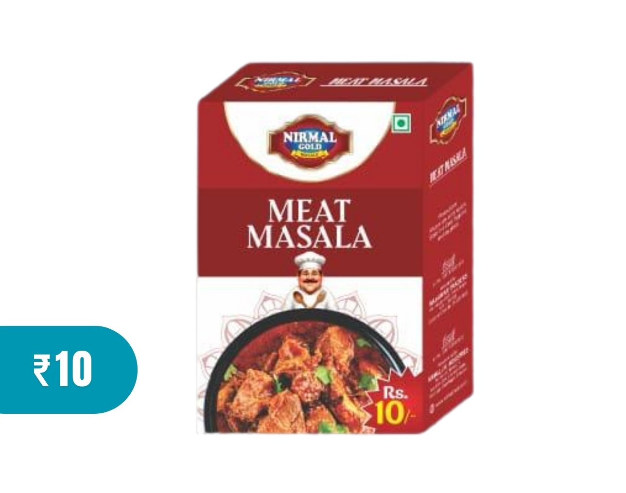 Nirmal Gold Meat Masala 12GM is a premium blended spice mix designed to enhance the richness, aroma, and authentic taste of mutton and other meat dishes. Carefully selected traditional spices are finely ground to maintain freshness and strong flavor.