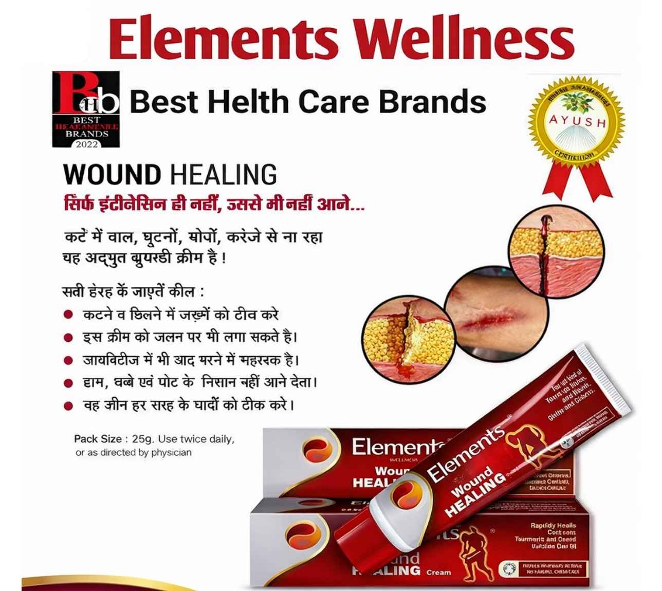 Elements Wellness Wound Healing Cream 25 g | Ayurvedic Herbal Wound Care & Skin Repair Cream