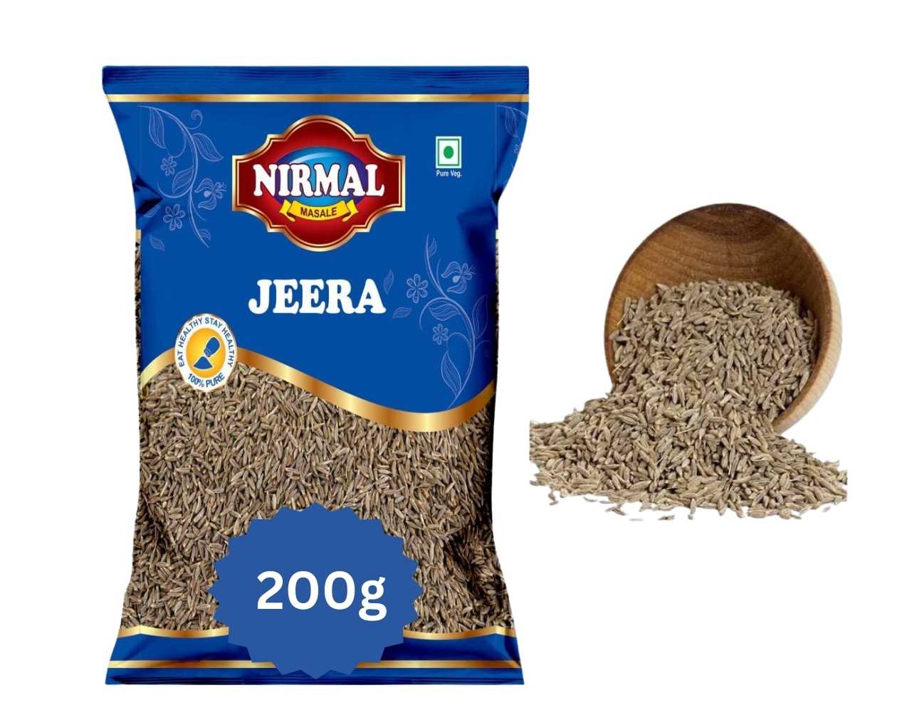 Nirmal Gold Sabut Jeera 200GM Pouch Pack | Premium Whole Cumin Seeds | Strong Aroma for Tadka & Daily Cooking | Fresh Flavor | Hygienically Packed | Made in India