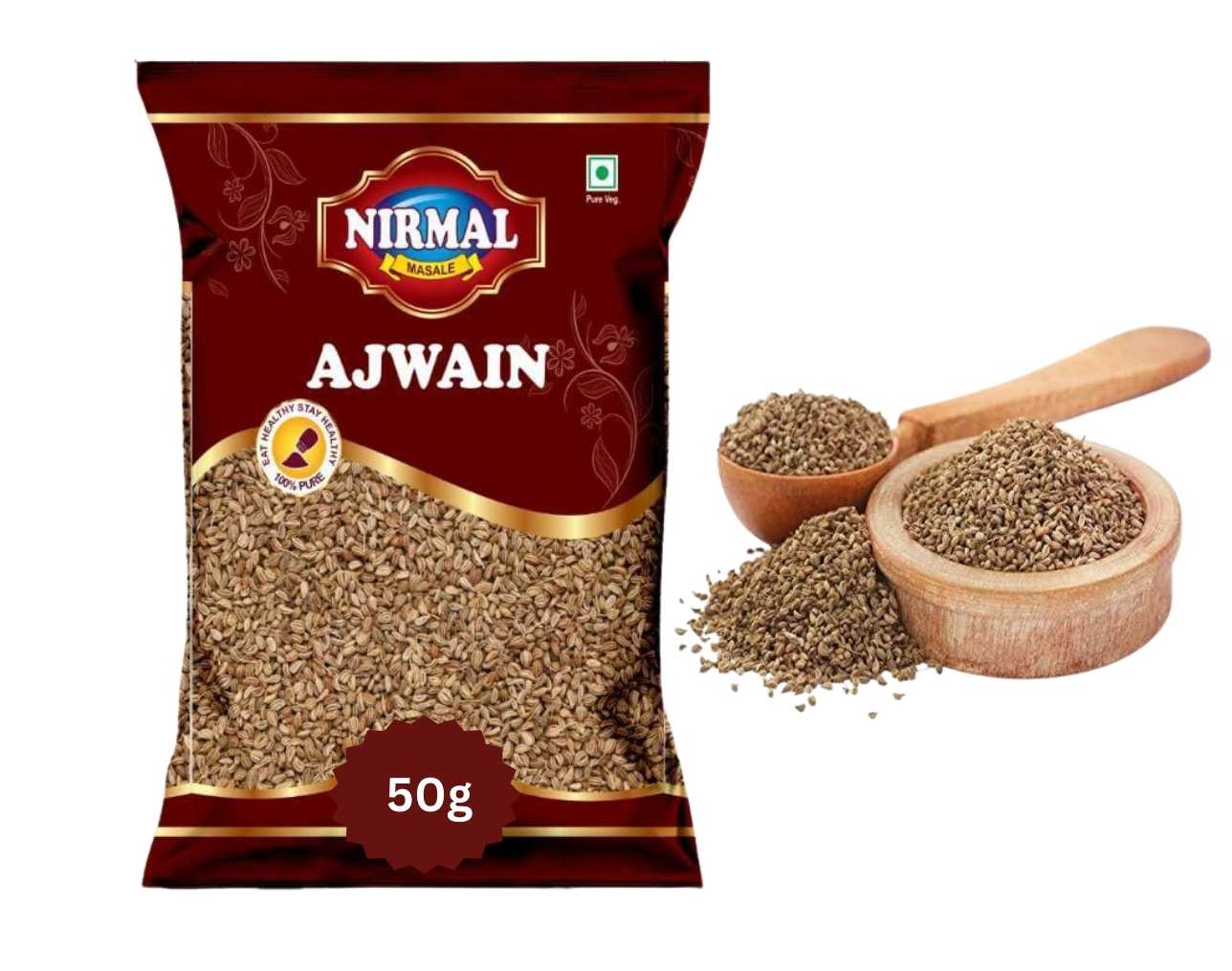 Nirmal Gold Sabut Ajwain 50GM Pouch Pack | Premium Whole Carom Seeds | Strong Aroma & Authentic Flavor | Ideal for Tadka & Cooking | Hygienically Packed | Made in India