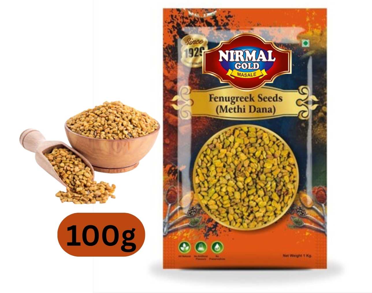 Nirmal Gold Methi Dana 100GM Pouch Pack | Premium Whole Fenugreek Seeds | Strong Aroma for Tadka & Daily Cooking | Fresh Flavor | Hygienically Packed | Made in India