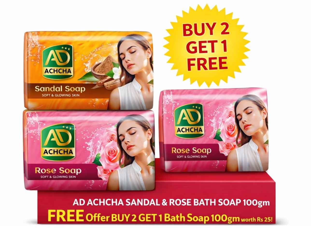 AD ACHCHA Bath Soap Sandal / Rose 100 GM — Buy 2 Get 1 FREE | Premium Fragrance Beauty Bath Soap Value Offer Pack